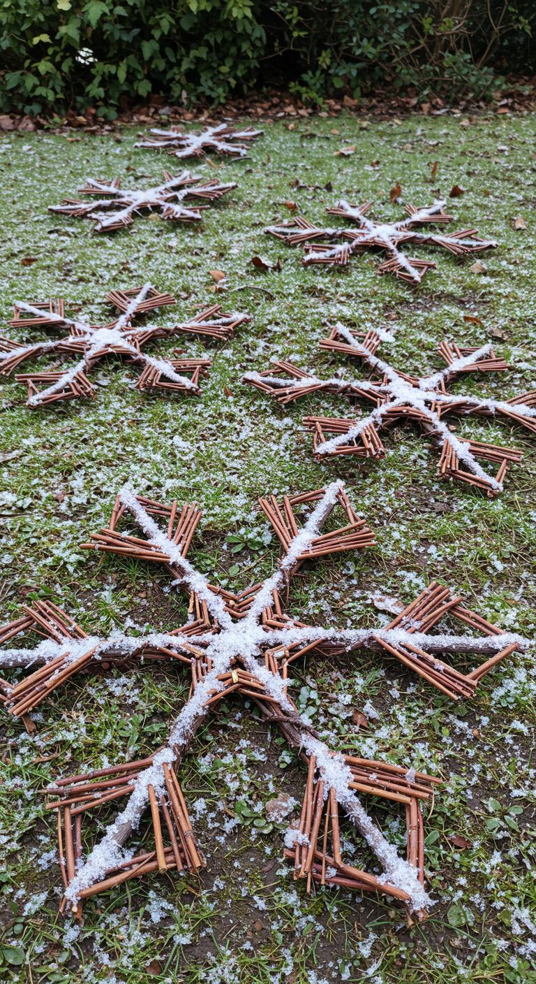 Create whimsical snowflakes from branches! Head outside and collect some sturdy twigs. Use twine to tie them together in various patterns. You can create large decorative snowflakes or small ones to sprinkle around your yard. To add charm, spray paint them white or follow up with some glitter for sparkle. Hang some from trees or cover them with faux snow for a frosty effect.