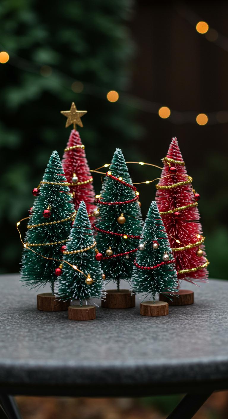 Step into the festive spirit with miniature Christmas trees! Gather materials like pinecones, small branches, or even small potted plants. Arrange them creatively on a table or your front porch. Decorate these little trees with tiny ornaments, ribbons, or glittering jewels. Wrap tiny LED lights for extra shine. These cuties offer delightful touches to any outdoor holiday display.