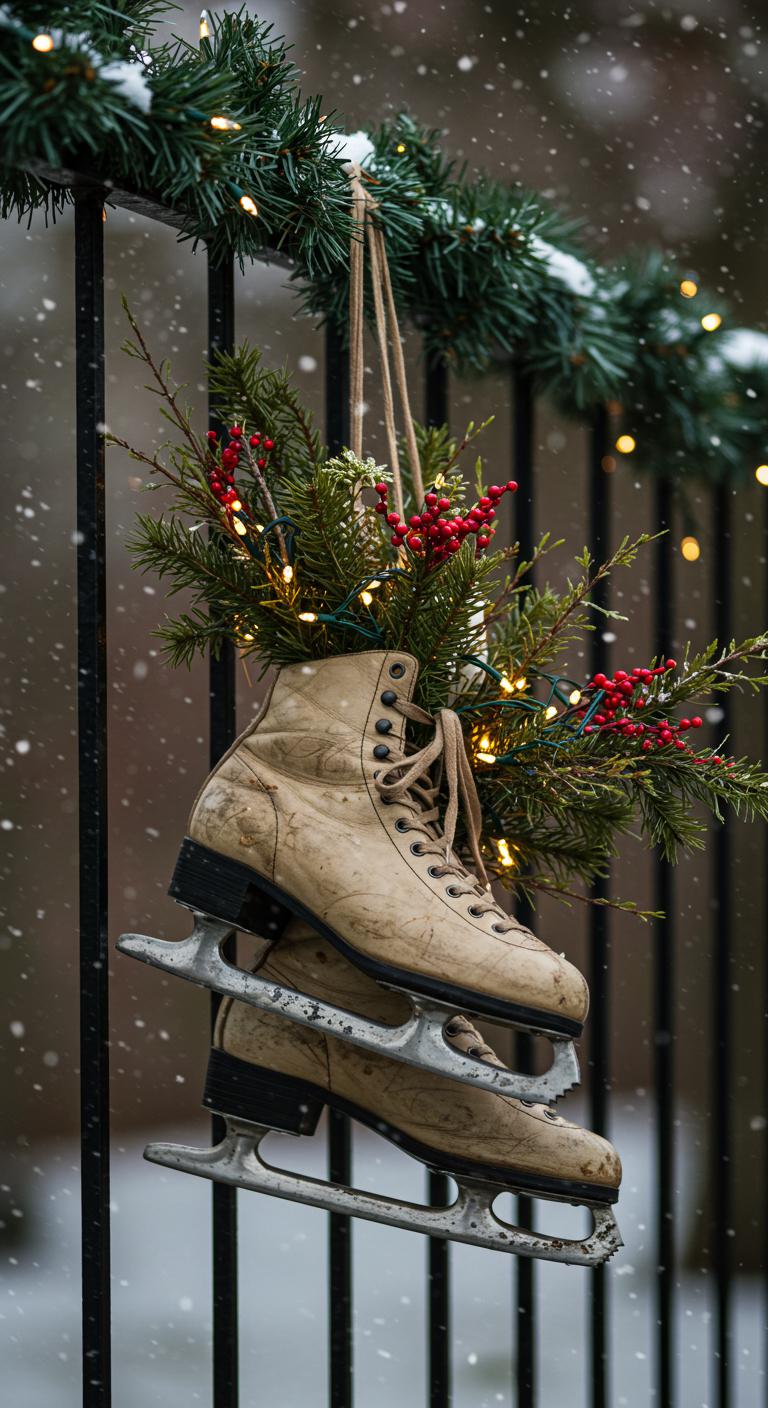 Use vintage ice skates as unique decor for your yard. Fill them with pine branches and colored ornaments for a nostalgic touch. Hang them by the entrance or attach them to fences. These crafty decorations tap into winter themes and capture the essence of holiday spirit. You can often find skates at thrift stores for under $15, making this project an inexpensive favorite.