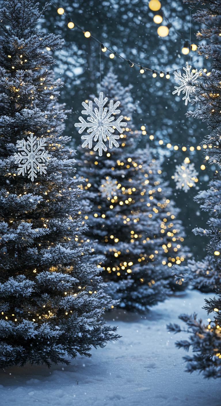 Craft whimsical snowflake decorations to bring magic to your yard. Cut snowflake shapes from cardboard or wood, then decorate with paint, glitter, or lights. Hang them from trees, porches, or fences to create an enchanting look. These snowflakes can be made for as little as $20, depending on your supplies, and add a festive charm to any outdoor setting.