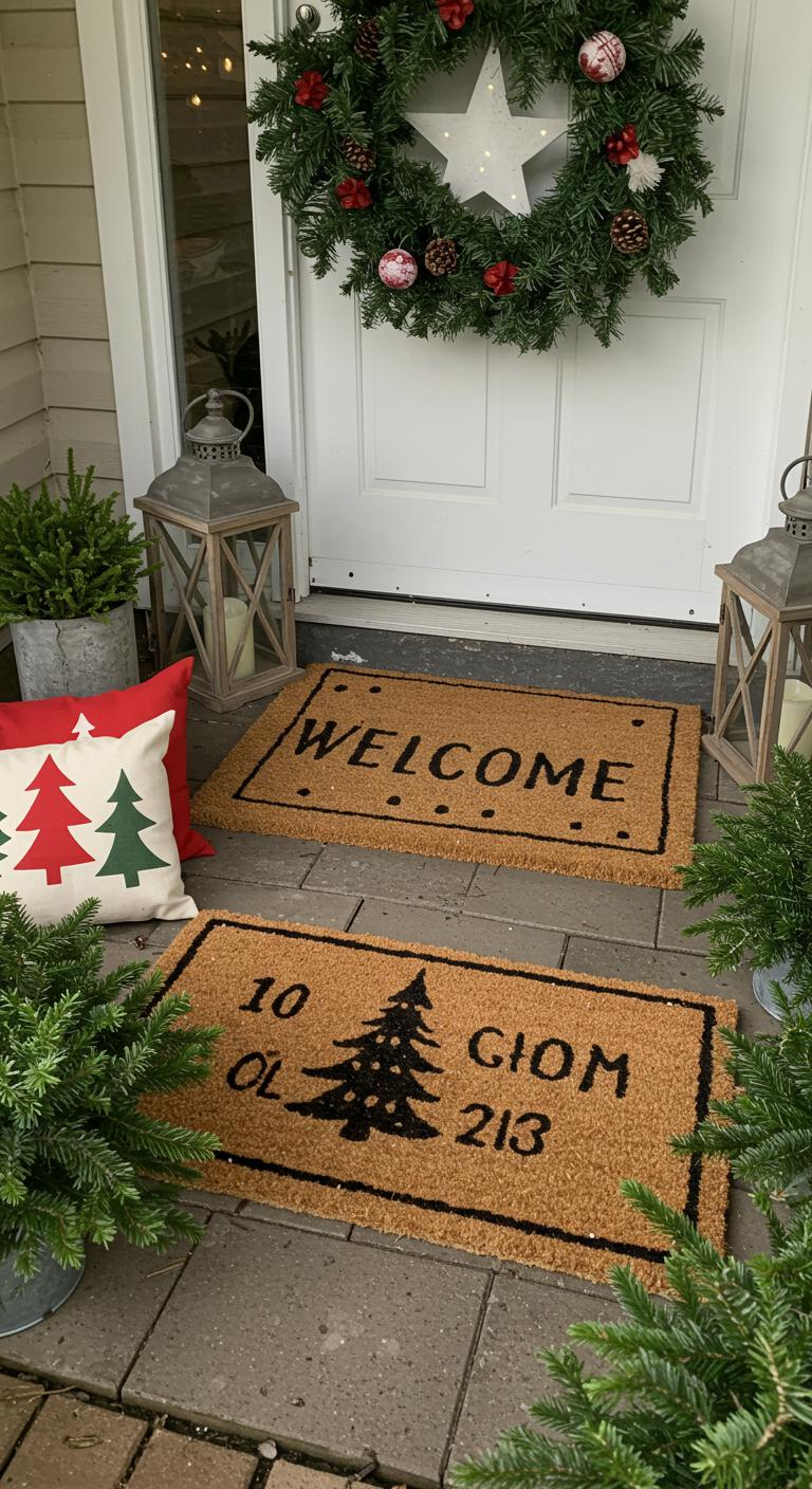 Add a seasonal doormat to your entryway for a cheerful touch. Combine it with decorative accessories like wreaths, lanterns, or pillows that match your yard decor. Craft embellishments made from inexpensive materials or skip the store-bought items to save money. A welcoming entrance adds charm for just $20 to $30, making your home look festive and inviting.