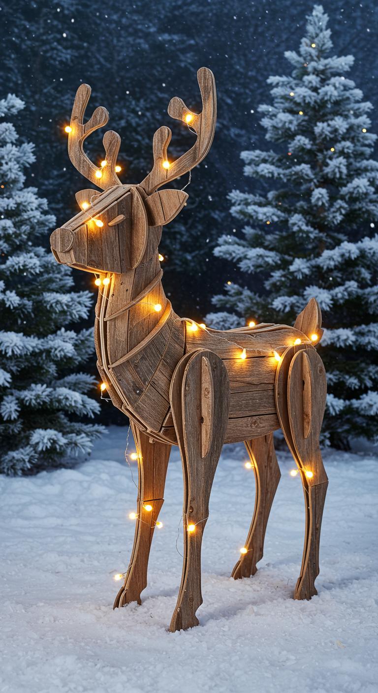 Creating wooden reindeer adds a festive touch to your yard. Start with wooden logs or planks to sculpt the bodies, legs, and antlers. A simple cut-and-dry design works best, allowing you to assemble the pieces with nails or wood glue. Paint on festive accents or use natural finishes for a rustic look. Drape some lights around the reindeer for a warm glow at night. This project is not only fun but also cost-effective, costing around $40 to $60 in materials.