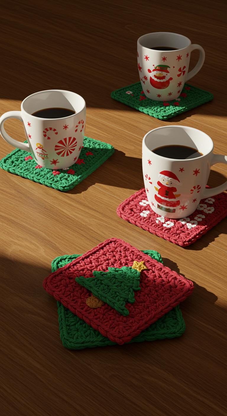 Create holiday coasters in just a few hours! Using classic stitches, craft coasters with Christmas motifs. The simple and functional projects can protect surfaces while adding festive charm. Mix and match designs, using multiple colors for vibrant results. These coasters make lovely gifts for friends and family when you’re short on time. Plus, they can be made inexpensively from stash yarn. With countless free patterns online, let your creativity flow!