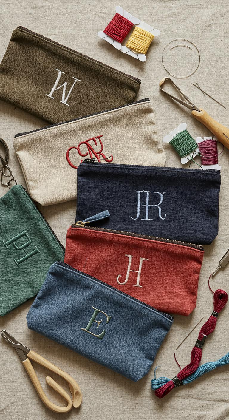 Monogrammed Canvas Pouches