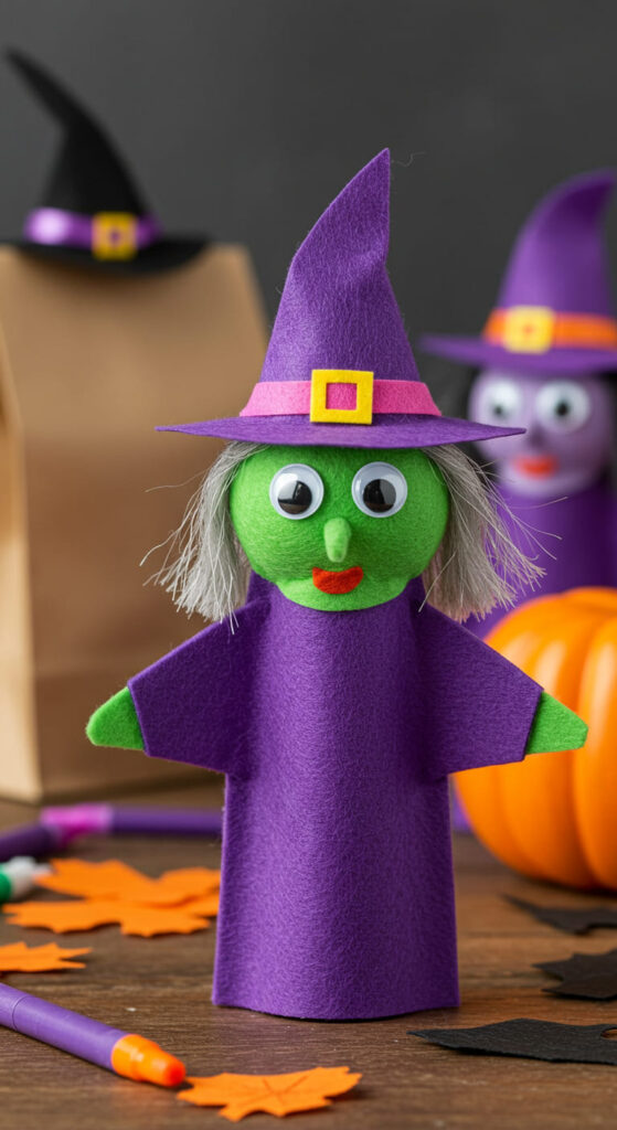 Witch puppets and figures bring a sprinkle of magic to Halloween crafting, inviting children to immerse themselves in a world of storytelling and imagination.