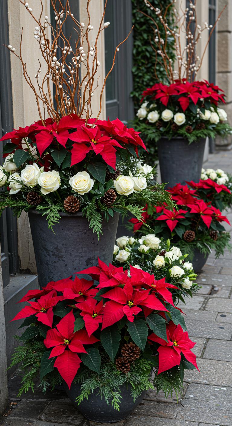 Seasonal floral arrangements can brighten your outdoor decor. Use sturdy plants like pansies or winter greens that can endure chilly weather. Pair them with holiday accents like red ribbons or ornaments for impact. To create a DIY arrangement, use pots with color and texture, filling with soil and planting the flowers. A small touch of nature can uplift your decor scheme.