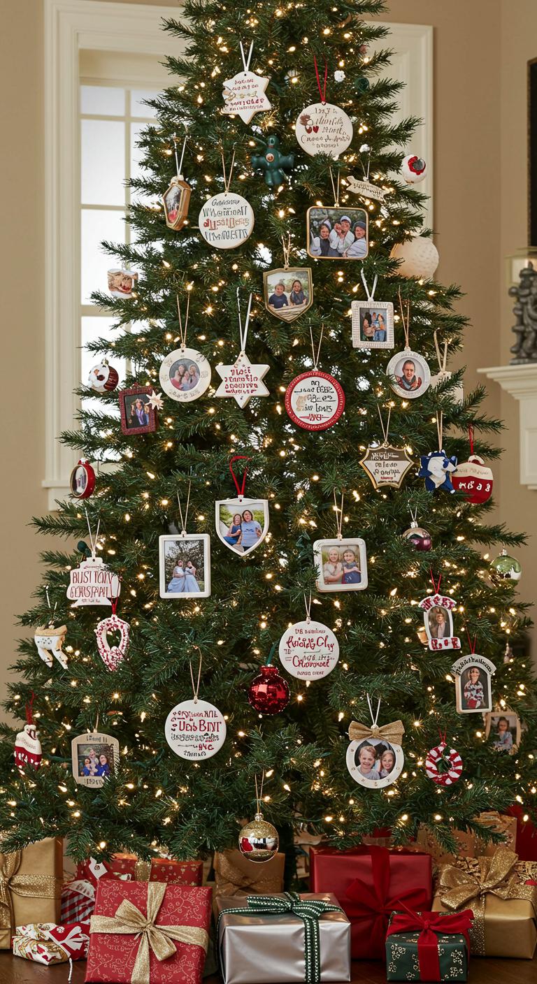 Personalized ornaments add sentimental value to your tree and create a unique look. Use slices of wood or sturdy paper to make custom ornaments with family names or special memories. A DIY option could involve decorating with paints or transferring images onto the surface for lasting keepsakes. Each ornament transforms into a cherished memory, enhancing the spirit of the season.