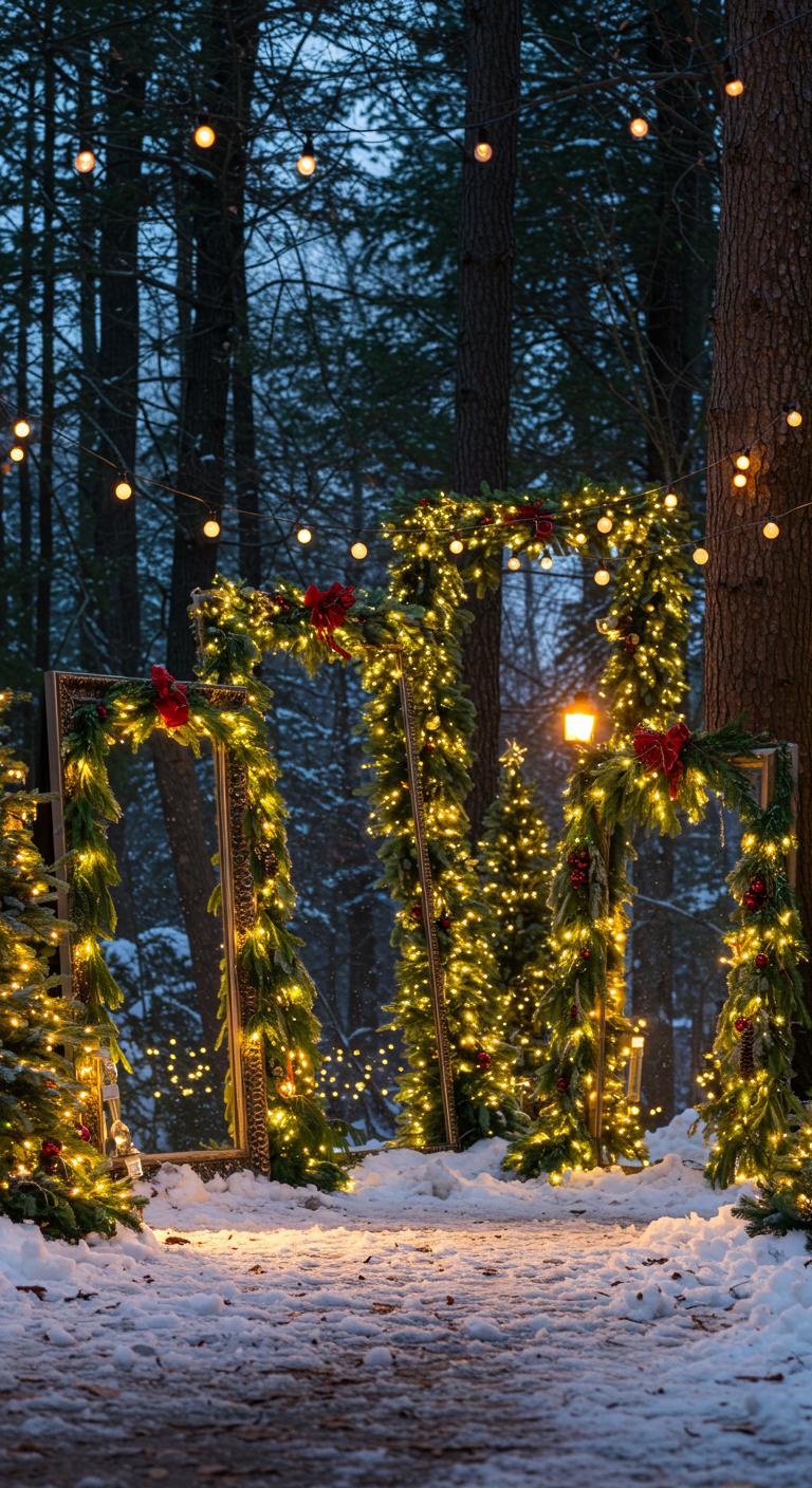 Incorporate mirrors or reflective surfaces into your outdoor display. These can amplify holiday lights and create stunning visual effects. Hang mirrors from trees or fences to bounce light throughout the space. DIY options include using thrifted mirrors decorated with holiday accents like garlands or ribbons. This lively addition adds unexpected glamour and sophistication while enhancing the overall festive environment.