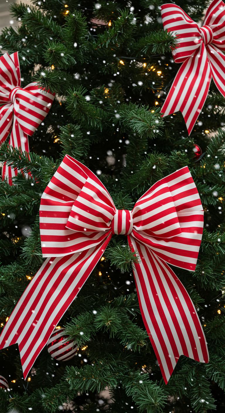 Bows instantly add elegance to any outdoor display. Choose large, striped bows to tie around trees or railings. Highlight their size by opting for contrasting colors like red and white, or go monochromatic for an elegant touch. To create DIY bows, use wire-edged ribbon and gather into loops for fullness. A simple, cheerful addition that lifts the holiday spirit and ties the entire decoration scheme together effectively.