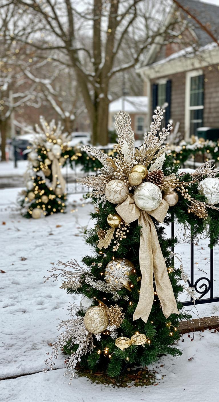 Choose classic color palettes like winter white, champagne, and evergreen for a timeless elegance. These shades evoke the holiday spirit without overpowering your outdoor space. You can incorporate these colors through ornaments, bows, or even ribbon on garlands. A simple DIY element can include painting existing decorations in these shades. This creates a coordinated look that stays chic and sophisticated.