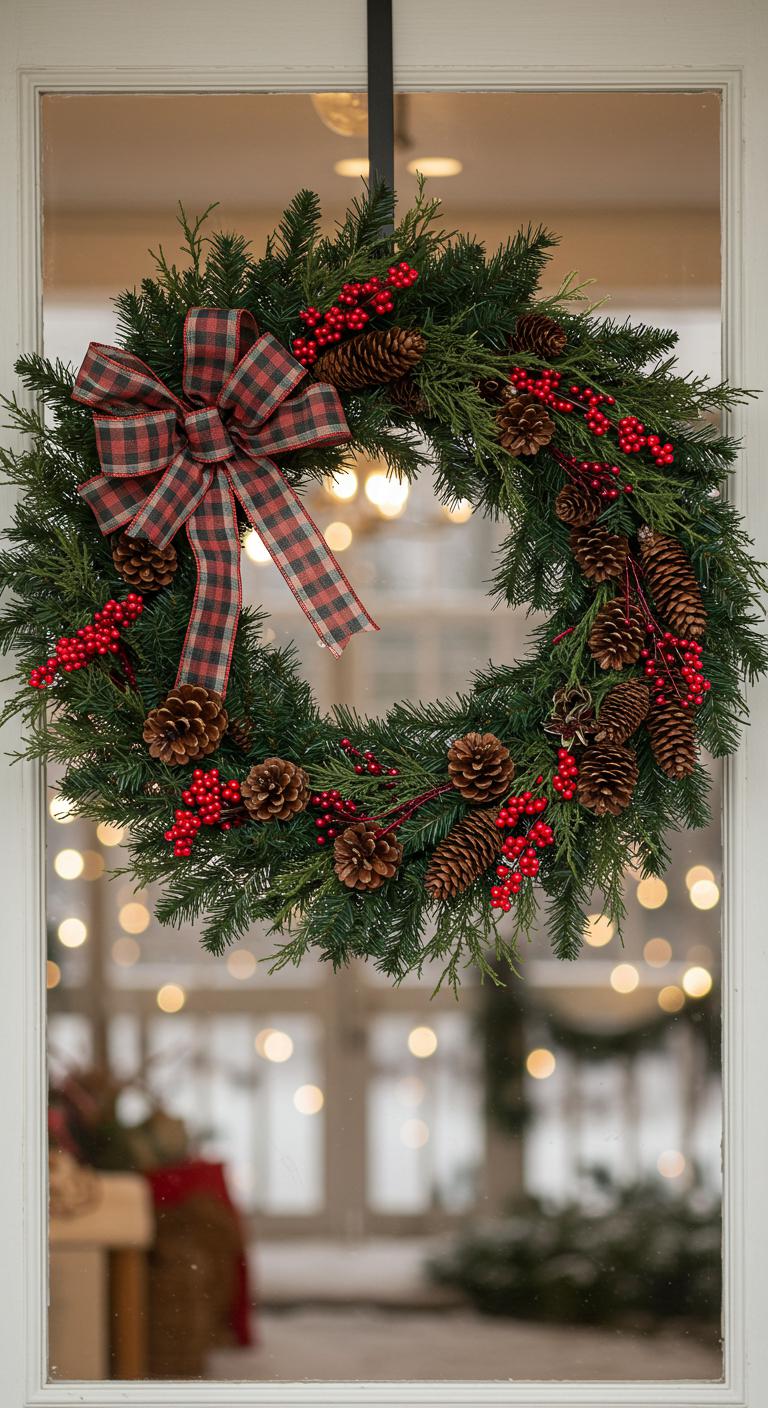 A wreath is a must-have for holiday decor. Create a welcoming feeling with a lush evergreen wreath adorned with pinecones and berries. These natural elements capture the essence of a farmhouse vibe. To save on costs, try making your own! Gather greenery from your yard, or purchase a simple base from a craft store. Attach decorations with floral wire and ribbons for a personal touch. Hang it on your door or propped against a wall for extra charm.