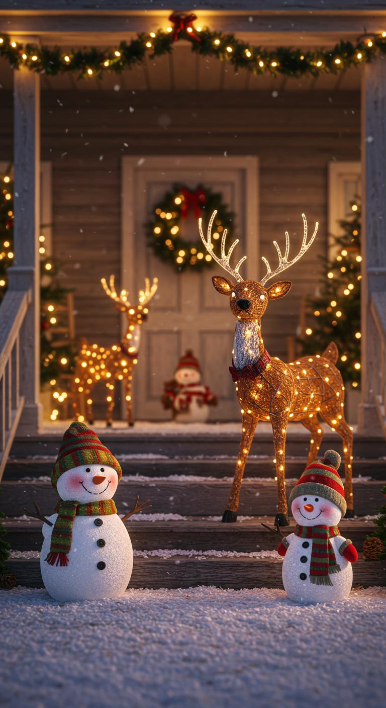 Introduce some fun with whimsical outdoor figures like snowmen, reindeer, or festive gnomes. These playful accents capture the joy of the season and appeal to children and adults alike. Look for budget-friendly options at local stores or even create your own from repurposed materials. Place these figures around your porch to add laughter and life to your decor.