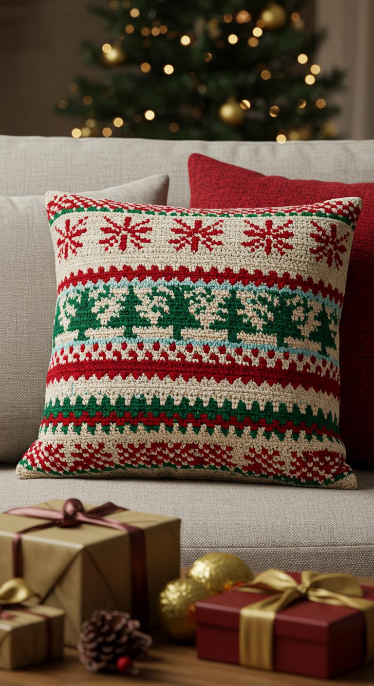 Make your living space cozy with crochet holiday pillows. They can brighten any room while being functional.