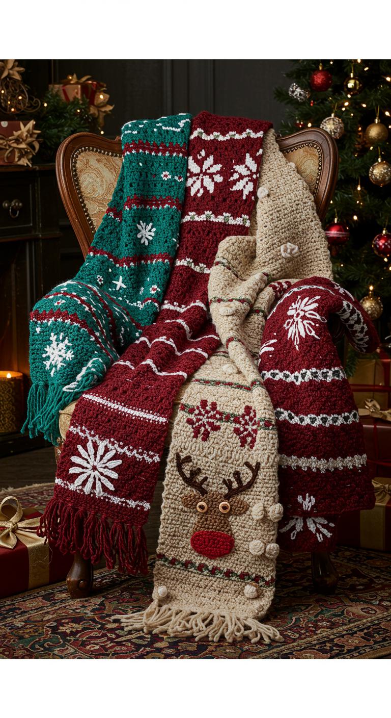 Keep warm with Christmas-themed scarves. These beautiful accessories can be a quick and satisfying project.