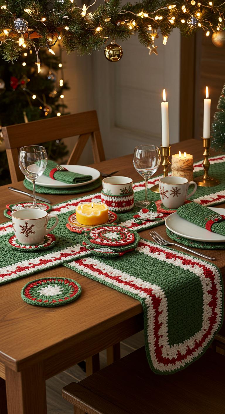 Add a personal touch to your holiday dining with crochet table decor. Create festive table runners or coasters that match your holiday theme.