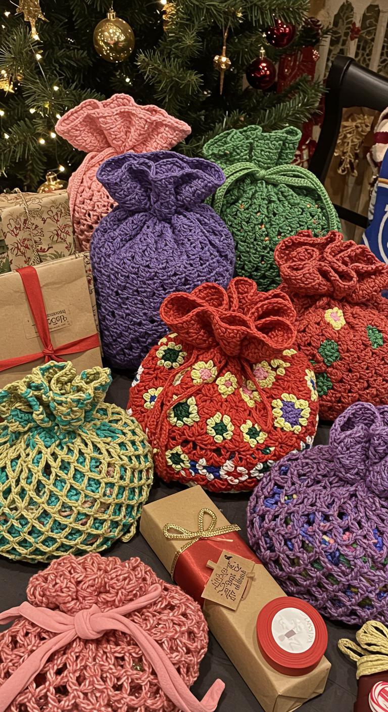 Skip conventional wrapping and opt for crochet gift bags instead. These bags are reusable and eco-friendly.