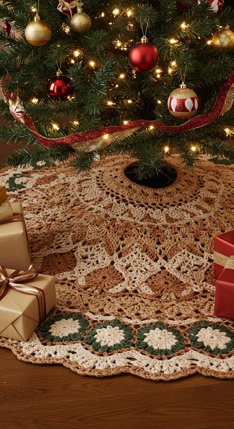 Complete your holiday decor with a crochet Christmas tree skirt. This craft is a fantastic way to showcase your crochet skills while adding beauty to your tree.