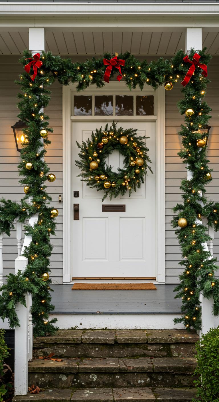 Bring a classic touch to your porch with lush greenery. Evergreen garlands can be draped elegantly over railings. A large wreath on the door instantly adds a warm and cozy vibe. Consider adding pinecones or small ornaments for some extra flair. Use twinkle lights to wrap around the greenery, giving it an enchanting glow at night. If you’re on a budget, look for artificial greenery that looks real and can be reused every season. It’s a simple way to make your porch look festive and merry!