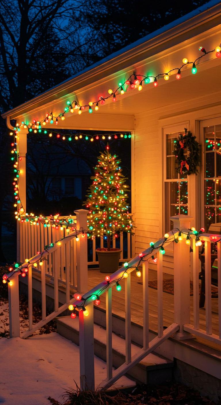 Nostalgia is back in style with colorful, vintage-inspired string lights. These bring a fun and cheerful atmosphere to your porch. Hang them across your entry or around window frames. The vibrant colors evoke warmth and joy, ensuring your home feels inviting. Look for lights with multiple settings; some even allow you to change the color scheme! If you prefer a DIY twist, create a light garland using traditional bulb designs. It’s a fun weekend project that adds personality to your porch!