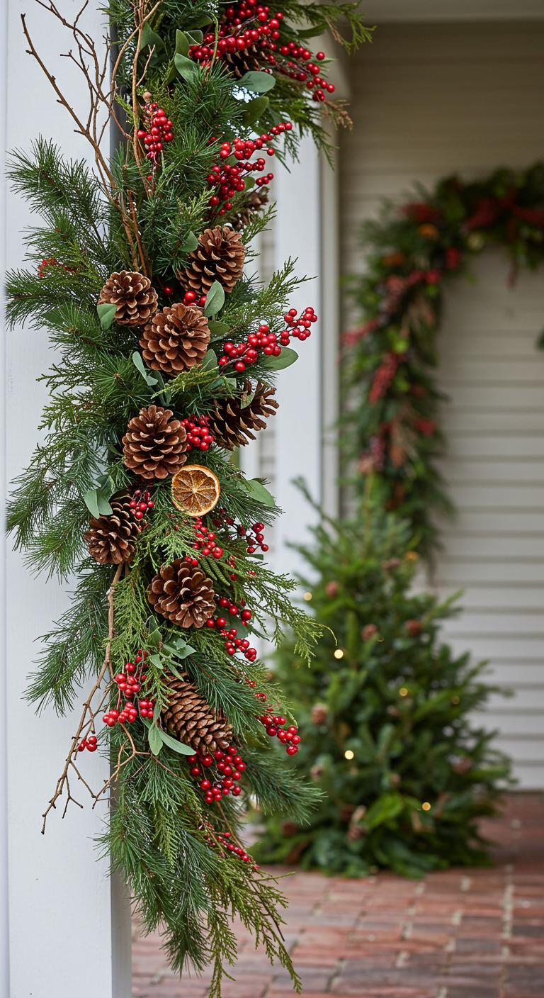 Incorporate natural elements like pinecones, berries, and fresh greenery into your decor for an authentic holiday feel. These items are affordable and can often be sourced from your yard or local markets. Create stunning arrangements on your porch railings, or scatter them throughout the decor. You can even bake citrus slices with cinnamon and hang them decoratively! This adds delightful scents of the season while keeping your look organic and in harmony with nature.