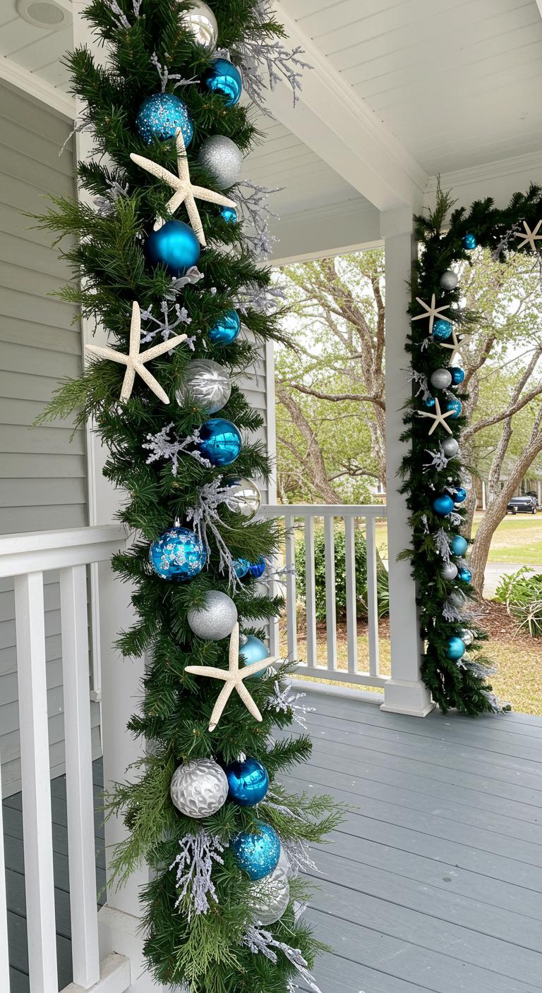 Bring a coastal touch to your Christmas decor with blue and white tones combined with natural greenery. This theme feels fresh and unique. Use ornaments in shades of seafoam blue and silver to reflect your coastal surroundings. Incorporate elements like driftwood or seashells for a beautiful natural accent. You can even create DIY ornaments from items found at the beach! This theme is especially appealing if you live near the coast but can work anywhere.