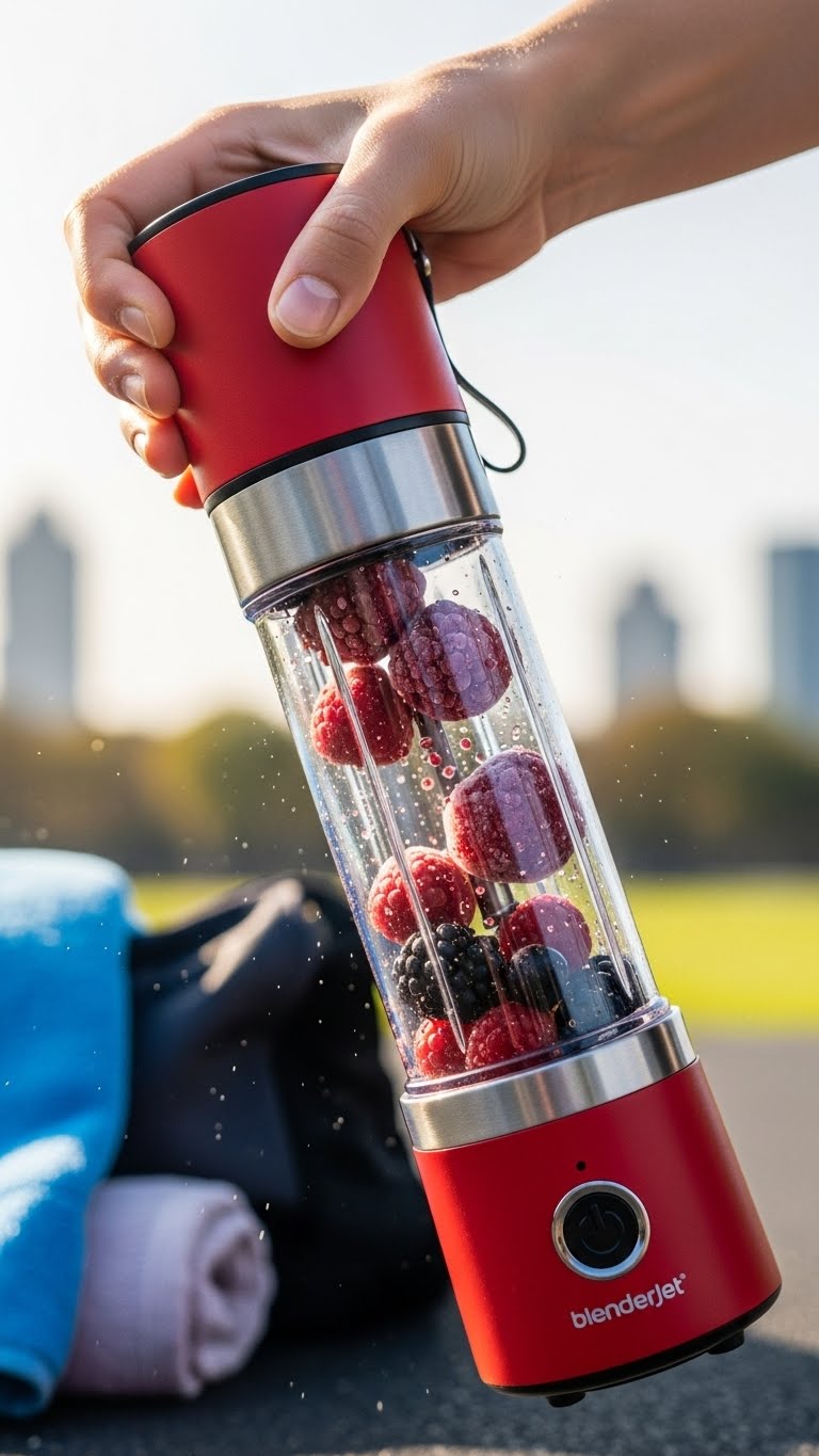 A compact personal blender like the BlenderJet lets you make smoothies anywhere—at home, the office, or right after a workout—without hauling a full-size machine.