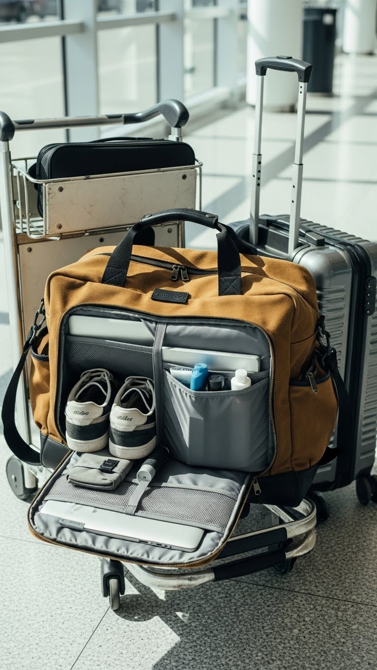 Multiple compartments keep shoes, tech, and toiletries separated. It’s minimalist, durable, and built for the guy who values mobility and zero-nonsense gear.