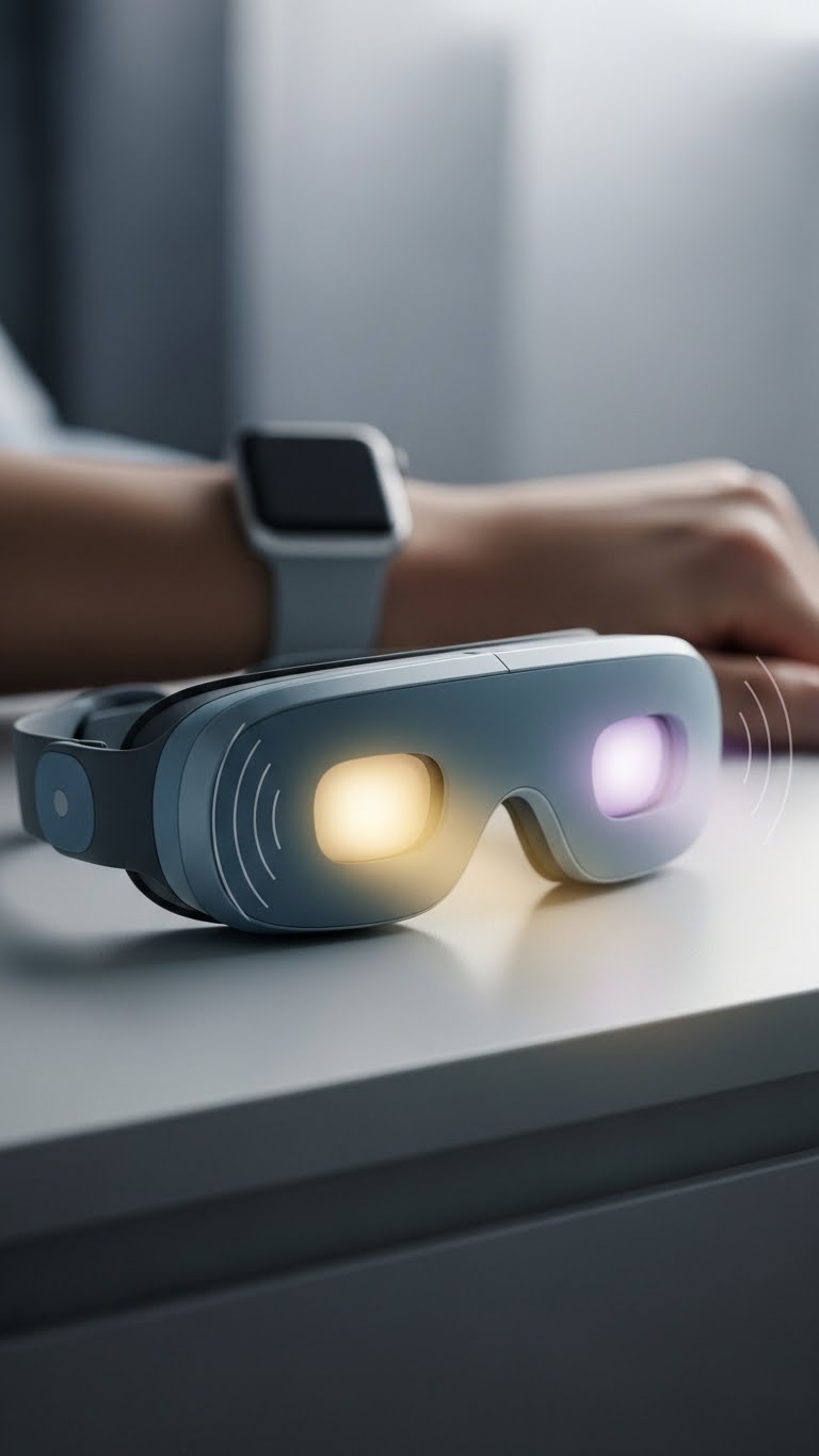 You’ll ease eye strain with targeted light therapy and vibration sessions that speed sleep and reduce tension.