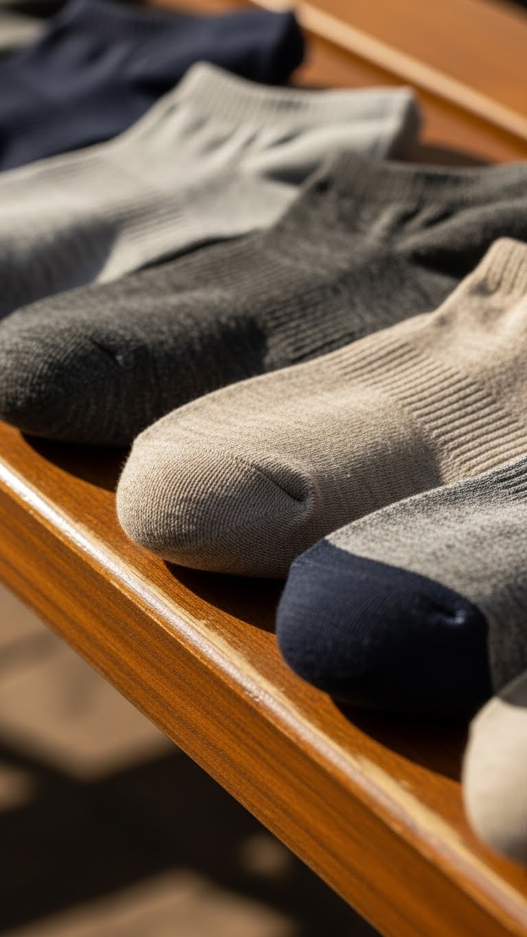 Choose breathable pairs with moisture wicking fabric, cushioned soles, and seamless reinforcement at toes and heels so nothing rubs or wears out. Neutral colors and low-profile designs keep your look clean, while technical features let you move freely all day — practical, subtle, and reliably useful.