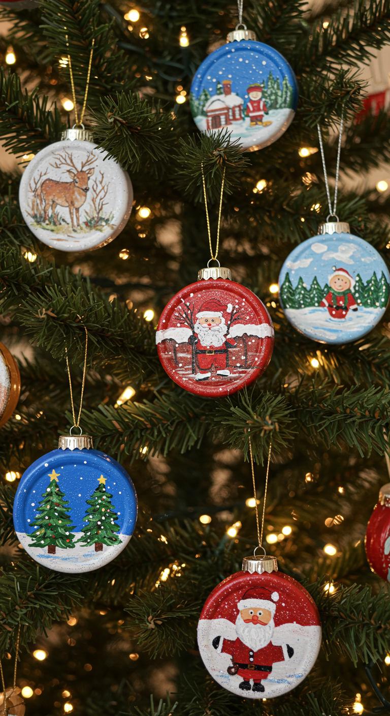 Jar lid ornaments offer a fun way to repurpose old lids. Paint them in seasonal colors and adorn with ribbons or seasonal decorations. These ornaments are lightweight and easy to hang, making them a great choice for family crafting sessions. Budget Tip: Use lids from old mason jars or pasta sauces to reduce waste!