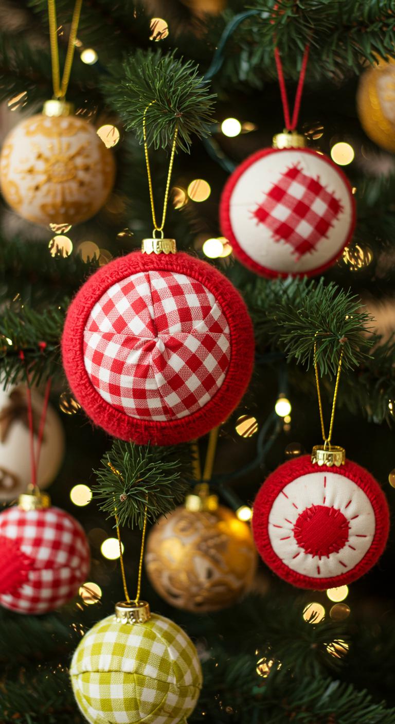 Burlap and plaid elements are staples of farmhouse-style decor. To craft these ornaments, cut fabric into circles or bows and wrap them around a foam ball or cardboard shape. Secure with twine for a natural look. You can even add embellishments like small pinecones or dried orange slices for an extra festive touch. Budget Tip: Old checked shirts can be cut into patches to create unique and personal patterns!