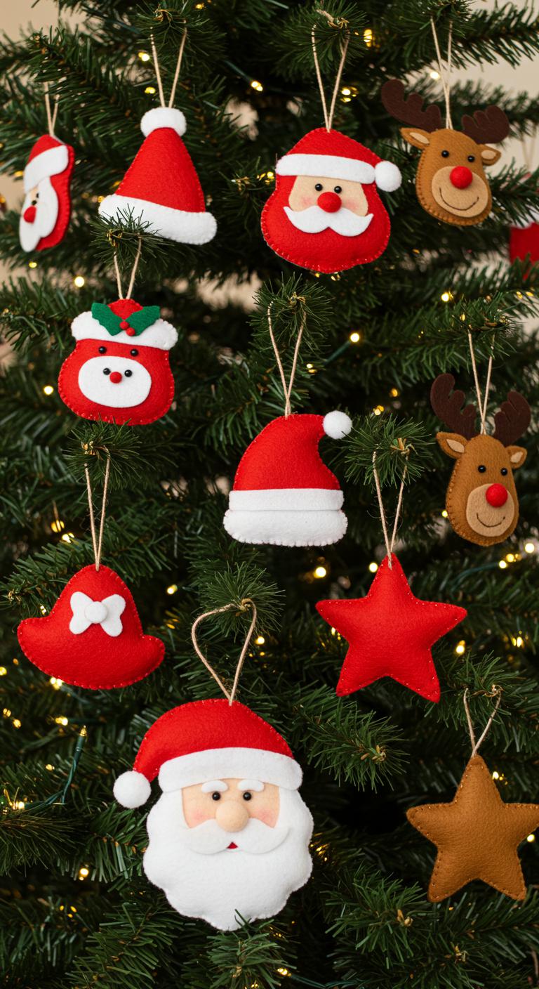 Felt is fantastic for crafting soft, warm ornaments. Choose colors that fit your theme and cut out shapes like stockings or angels. You can stitch or glue the edges together, stuffing them lightly for dimension. Add embroidery for detail and hang them with a cheerful ribbon. Tip: Make it a family project by allowing everyone to choose their favorite shapes and colors!