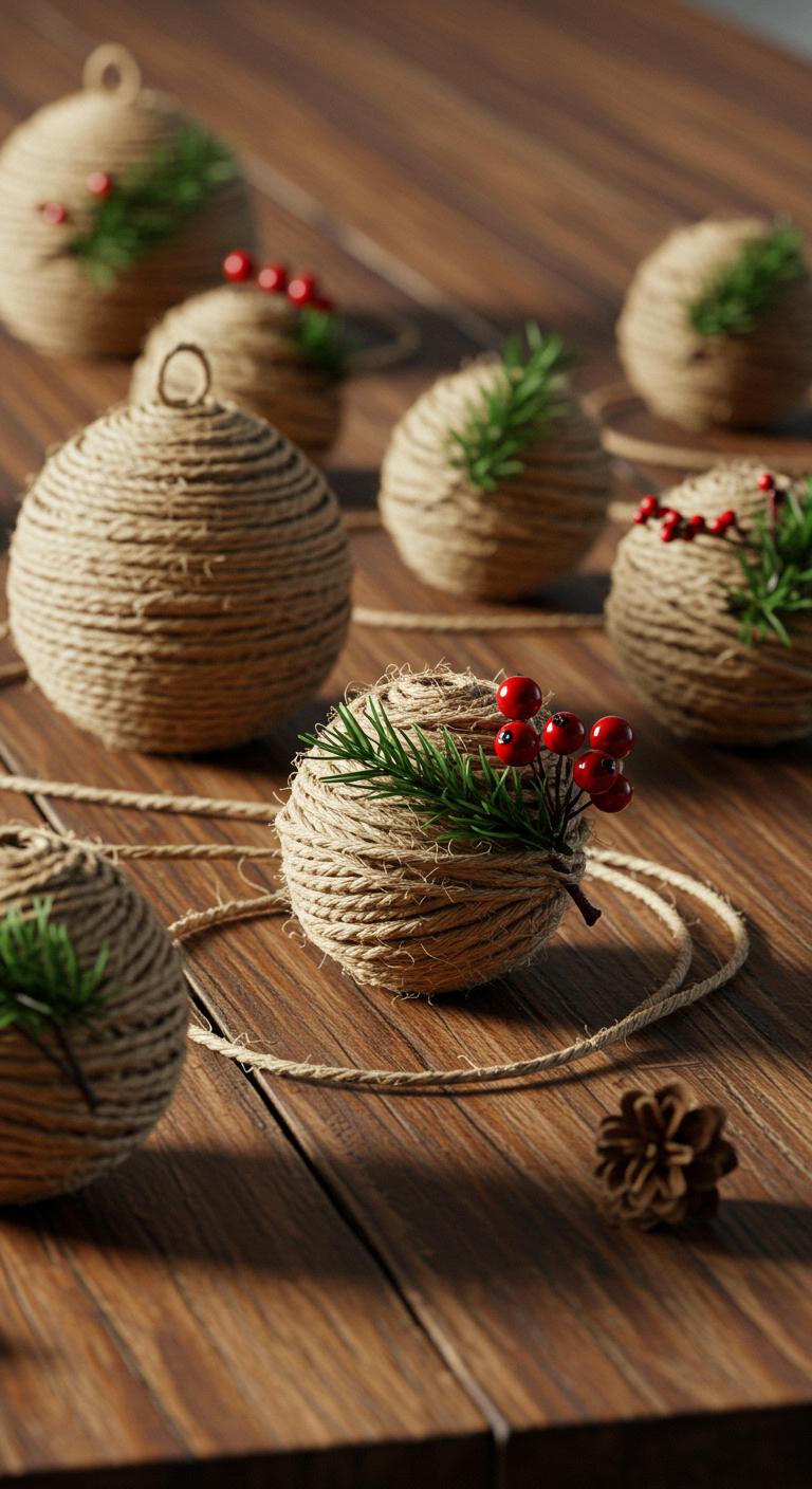Twine-wrapped ornaments add a rustic charm to your decor. Start with a foam ball or old ornament, then wrap it tightly with natural twine. For added interest, glue on dried flowers or small pine branches. This DIY is straightforward and looks stunning on any tree! Budget Tip: Use leftover twine from other craft projects to save money!