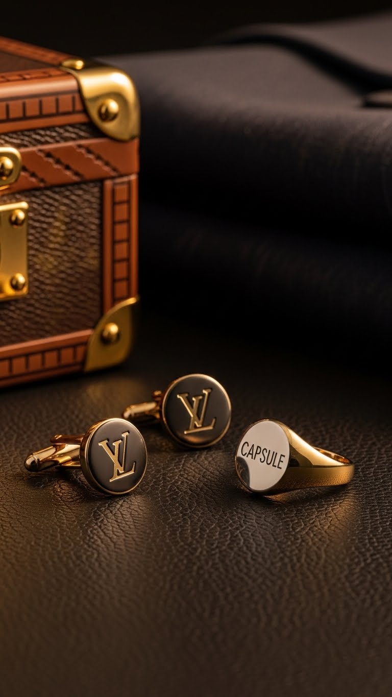 A Louis Vuitton piece does more than accessorize — it becomes a portable heirloom that refines your everyday uniform. Choose Monogrammed cufflinks for subtle authority or a Capsule signet club ring that reads as intentional legacy.