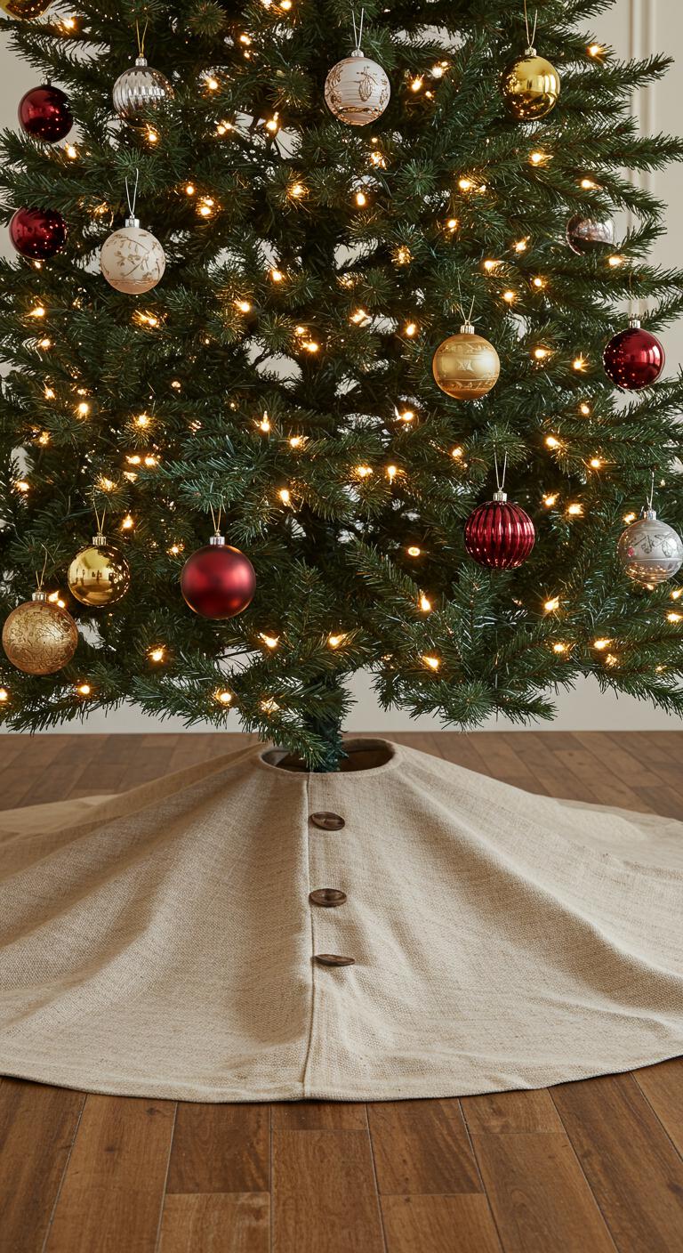 A clean tree skirt adds a finishing touch. Choose simple, understated fabrics like burlap or a solid color that complements your decorations. Creating a DIY skirt from fabric remnants can be budget-friendly. Wrap the tree base without overwhelming with excess; aim for a tidy look overall.