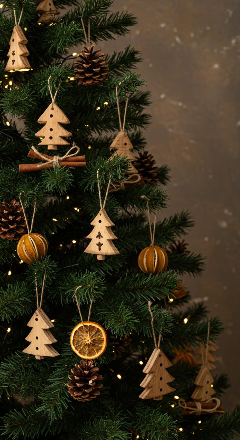 Incorporate organic materials to personalize your tree. Dried orange slices and rustic wooden ornaments bring warmth and charm. Aim for neutral colors to keep it understated. To create DIY wooden ornaments, cut shapes from inexpensive wood slices, and sand them to smoothness. Add a simple ribbon to hang them on the branches for a charming touch.