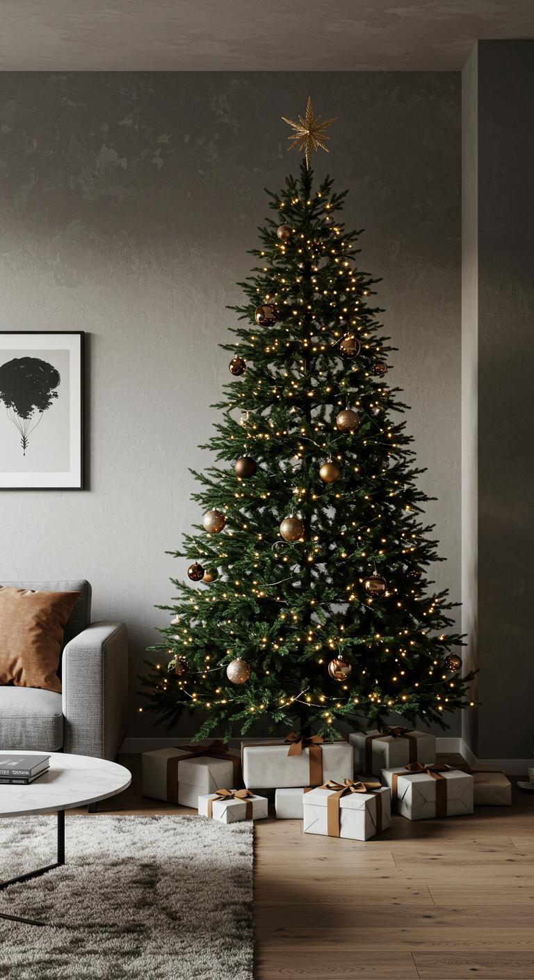 Using only warm white lights on your tree creates a tranquil vibe. It’s perfectly minimal. Instead of cluttering with ornaments, let the lights shine as the focal point. Wrap them around the branches, and go for varying lengths to give depth. Budget tip: Use string lights from previous years, or pick up affordable strands from local stores. If you want a chic touch, layer lights deep within the branches for a soft glow effect.