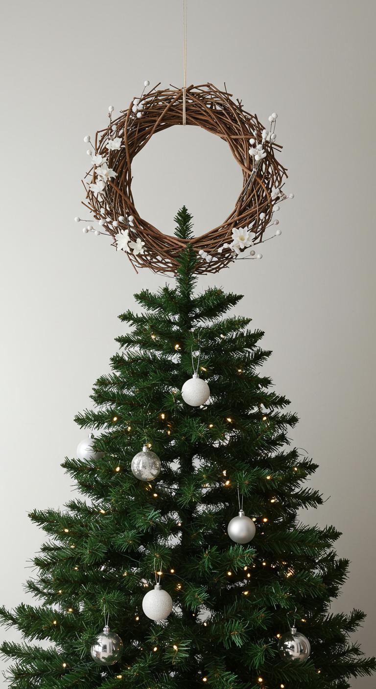 A minimalist wreath serves as an elegant tree topper. Opt for one that complements the overall theme: think natural materials, soft florals, or even a simple twine wreath. This creates a focal point without drawing attention away from the tree. You could even craft your own wreath using twigs and dried grasses. Drape it with soft ribbon for added texture. Attaching a simple hook to the top of your tree allows for easy placement without disrupting the design’s balance.