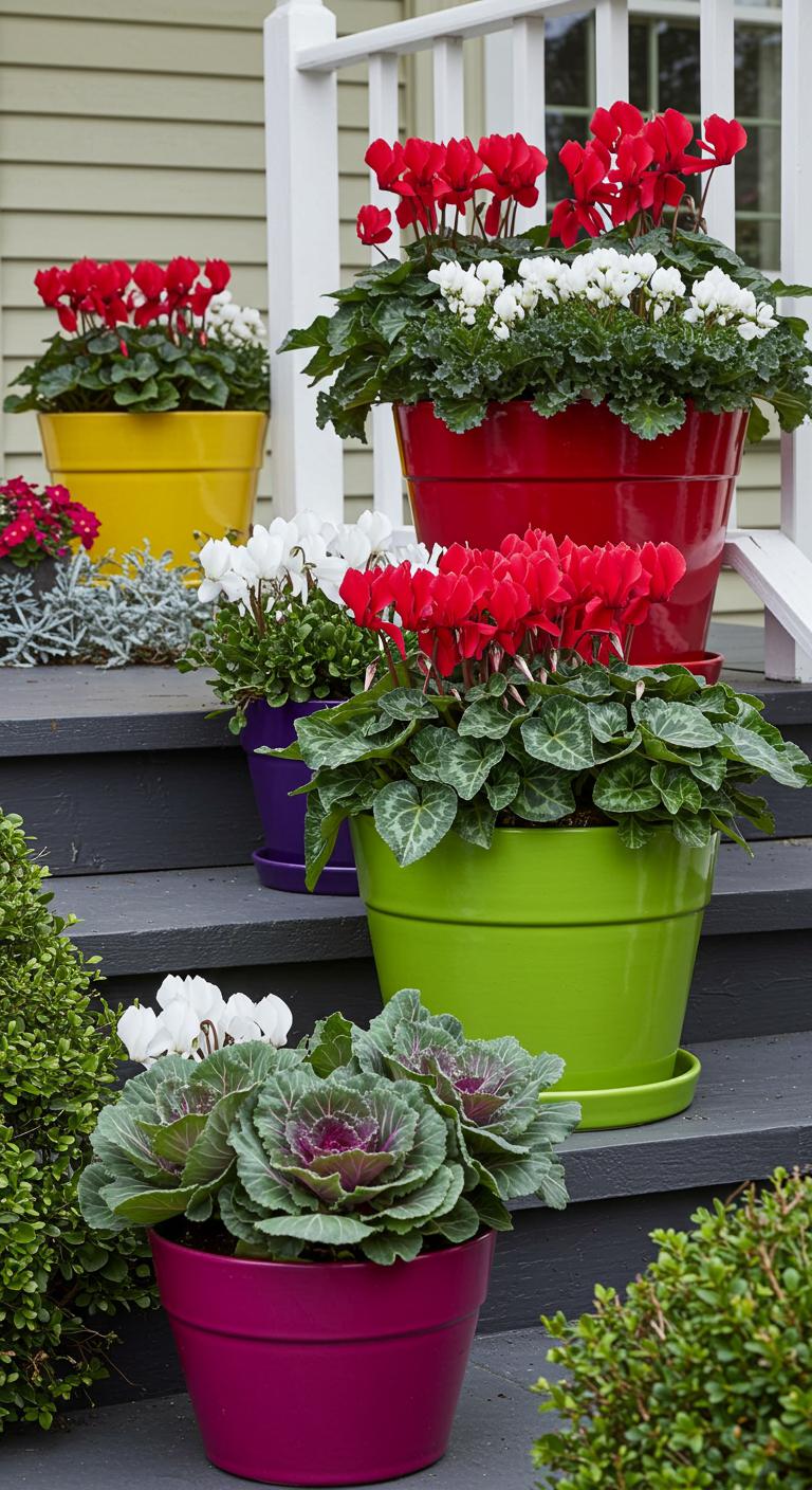 Colorful planters brighten up your porch instantly. Select holiday-themed plants that provide vibrant colors, like cyclamen or ornamental cabbage. Repain old pots with festive shades such as red or green. DIY pot painting is inexpensive and perfect for holiday decor. Arrange these planters asymmetrically along your steps or entryway for a playful, welcoming feel. Be sure to maintain and water them through the holiday season for a fresh look.