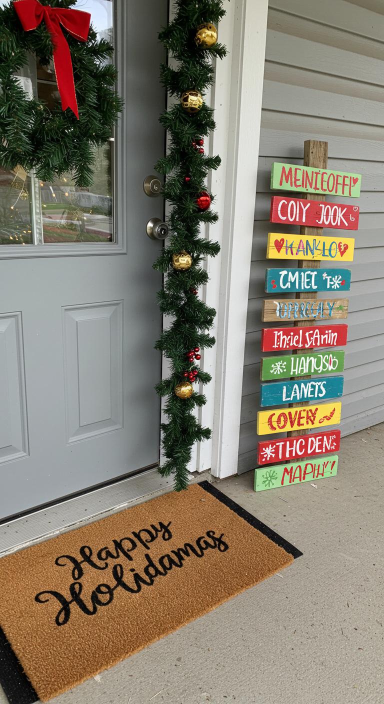 A warm greeting at your front door is essential. Welcome mats with festive phrases are a great start. Create a simple wooden sign with your holiday message. If you’re into crafts, wood pallets and paint can make this fun and easy. Adding cheerful elements like wooden reindeer or festive figures near the door enhances the look. Consider the arrangement and ensure it’s visible from the street.