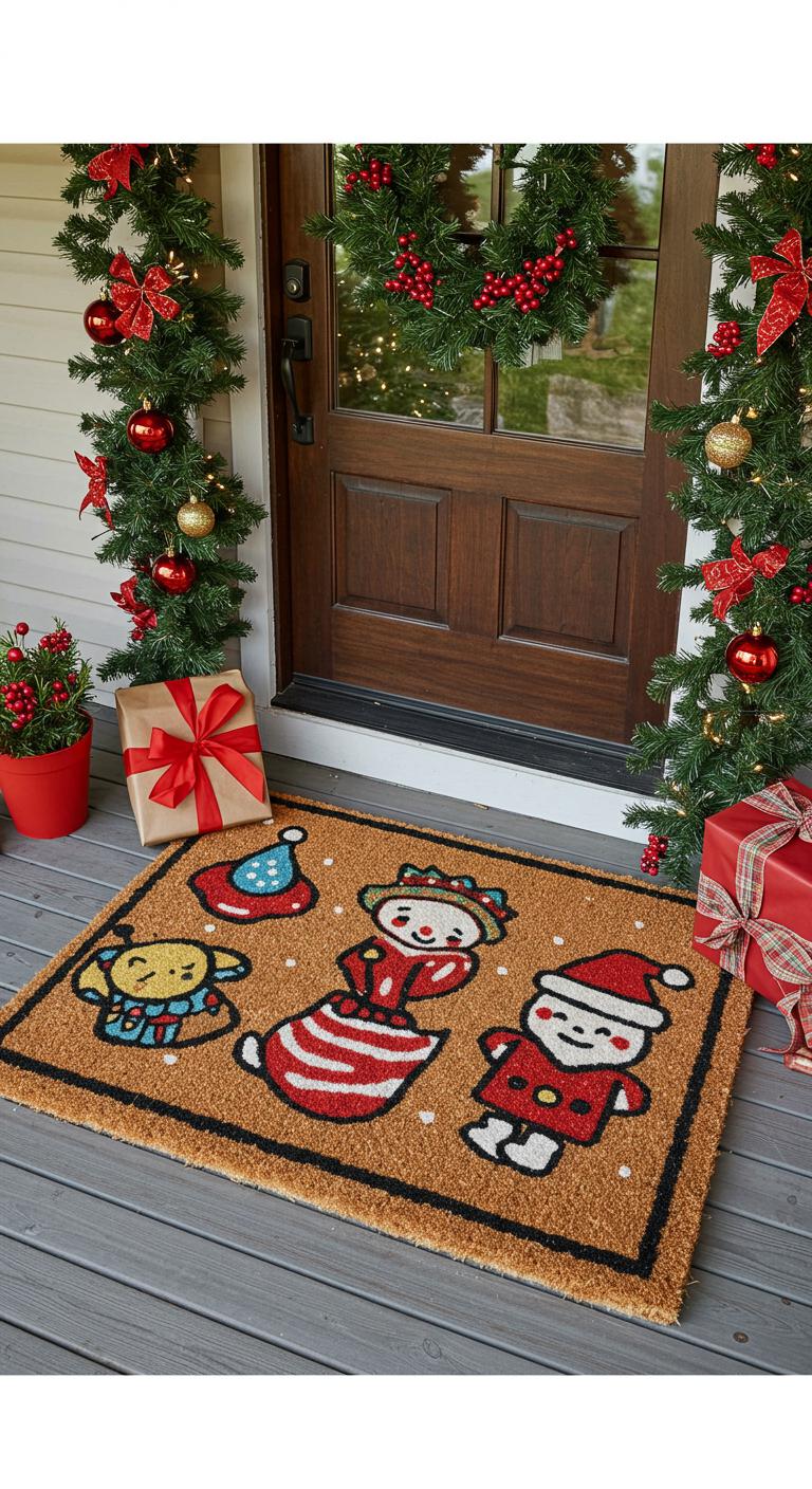 A holiday-themed doormat creates an inviting touch. Search for mats with seasonal designs. Alternatively, you can make your own! Use stencils to paint holiday messages on a plain mat. Pair this with a simple layered decor look, blending natural and colorful accents. It’s a small but witty way to showcase your holiday spirit while remaining budget-friendly.