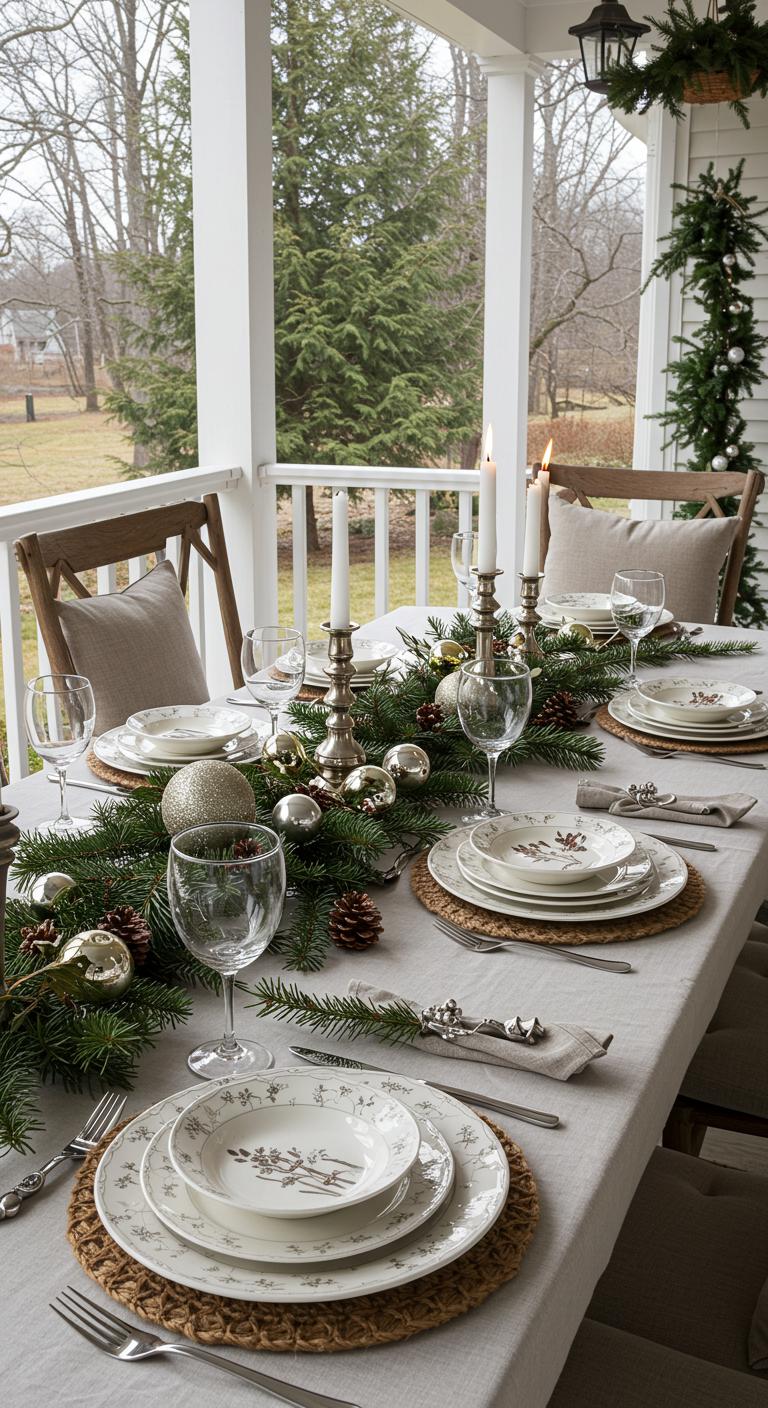 A festive table can serve as a focal point on your porch. Decorate it with elegant dishware and seasonal accents like pine or candles. Keep the decor simple but inviting. Use dollar-store items to save money while still creating an atmosphere. Add fresh flowers or holiday characters for charm. A themed table is a lovely way to encourage holiday gatherings.