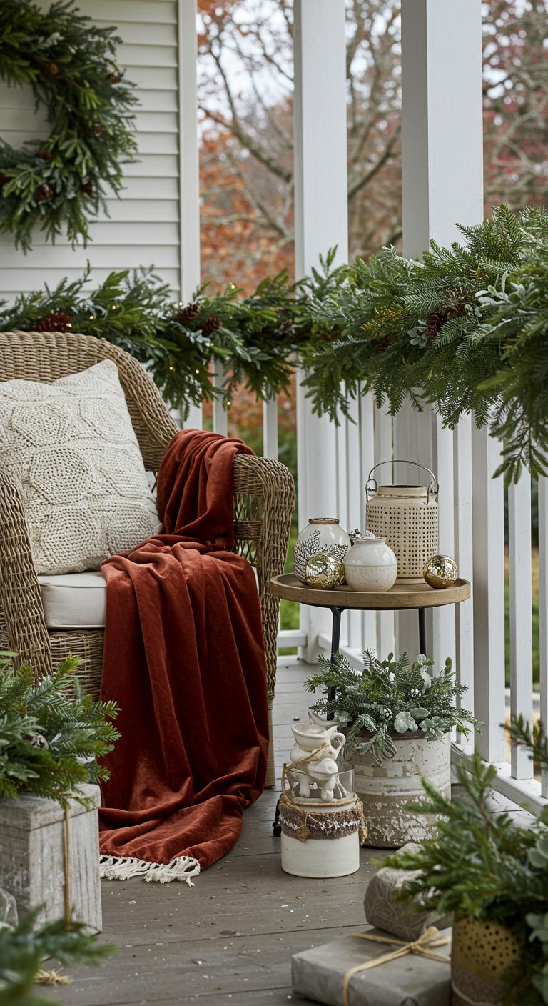 Mixing materials adds interest to porch decor. Try combining some velvet ribbons with ceramic figures or wood accents. This can make everything feel cozy and inviting—perfect for the holiday season. Look for affordable accents at thrift stores or craft shops. You can also add pillows in different fabrics to your outdoor seating. Simple DIY options include making your own ornaments from clay or wood for a personalized touch.
