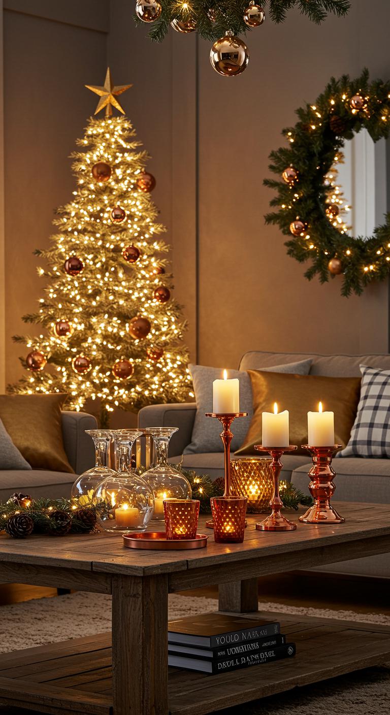Warm metallics can enhance your holiday decor, giving it an elegant touch. Think of accents in gold, rose gold, or bronze through ornaments and candle holders. A chic metallic table runner or string lights highlights the features. Check out local craft stores for budget options or DIY metallic ornaments by spraying old decorations with gold or bronze paint. Pair these with natural woods and texture to soften the shine. A few metallic pieces on a mantel or dining table work wonders in creating that sophisticated Christmas feel.