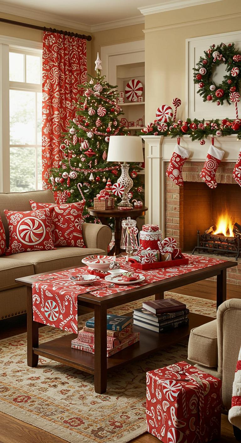Add a festive spirit with playful patterns like stripes and candy cane motifs. Embrace vibrant reds and whites or green and white combinations in your decor. Choose table linens, wrapping paper, and ornaments that reflect this fun aesthetic. Local craft shops often sell patterned fabrics at reasonable prices for DIY projects. For a whimsical touch, incorporate striped decorations into simple garlands or bows. This lively decor element will invite joyful charm into your living room this Christmas season.