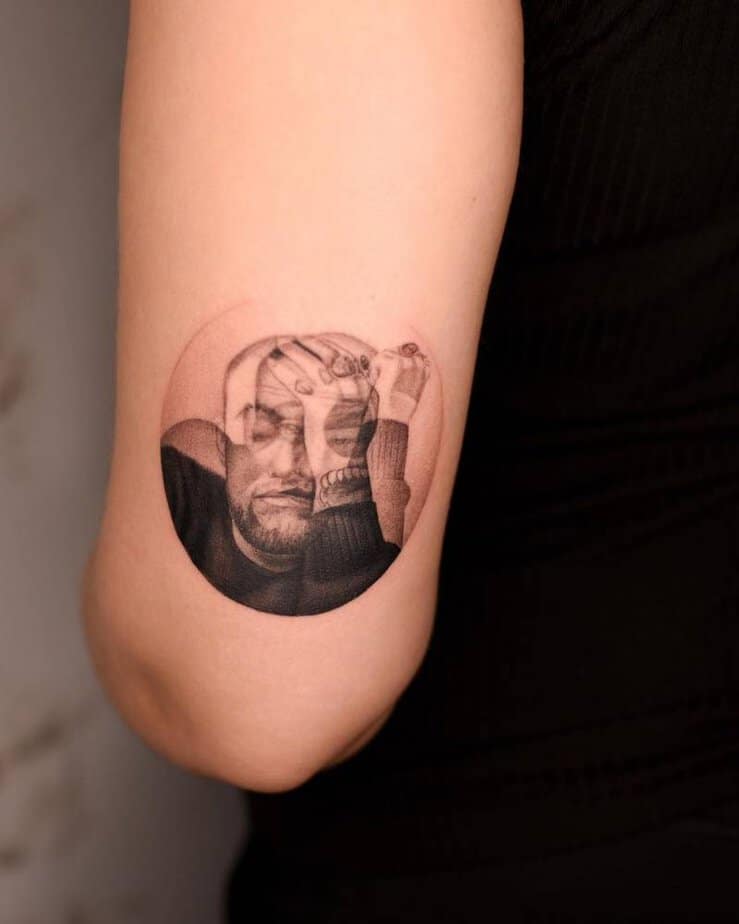 A circular, distorted portrait of Mac Miller that leans into a psychedelic, almost dreamlike vibe. The blur gives it an emotional, otherworldly feel — a really moving tribute that’s more about atmosphere than perfect likeness.