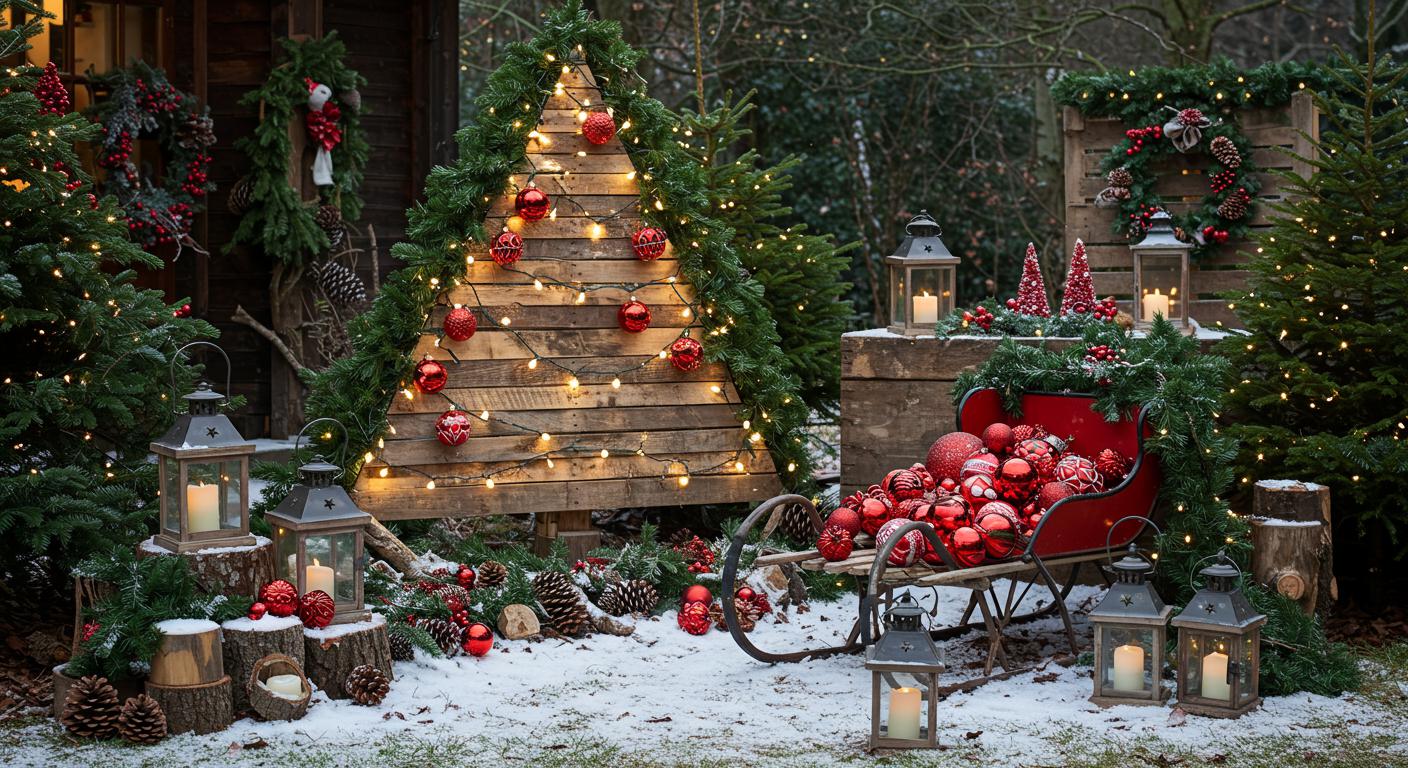 A rustic log Christmas tree adds a charming, natural touch to your holiday decor. You can create this festive focal point using logs of various sizes, stacked in a tree-like shape. Start by selecting sturdy logs and arrange them in a conical form, securing them with twine or nails for stability. To enhance the rustic charm, leave the bark intact or lightly sand the surfaces for a smoother finish. Decorate the tree with string lights, burlap ribbons, or handmade ornaments to infuse your space with holiday warmth. You can even add pinecones or sprigs of evergreen for an extra seasonal touch. This DIY project not only showcases your creativity but also brings a cozy, inviting atmosphere to your outdoor space.