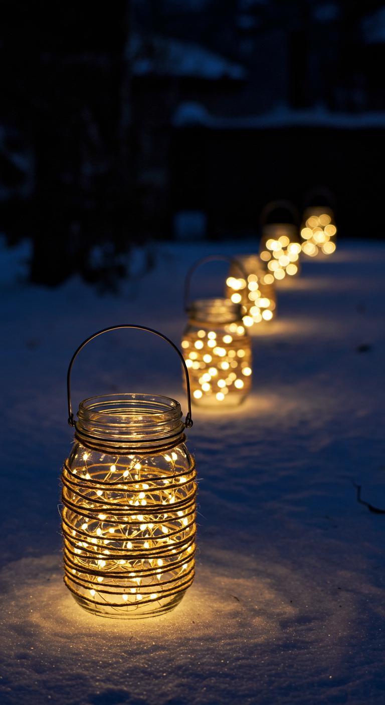 Make your own mason jar lanterns for a soft, cozy glow this Christmas. Use clean mason jars and fill them with string lights or candles. Decorate the jars with burlap, lace, or ribbons for a charming touch. You can hang them from trees or place them on tables or stairs. This project is versatile and lets you use materials you already have at home. Plus, they can be reused for other occasions throughout the year. A perfect way to light up your outdoor space!
