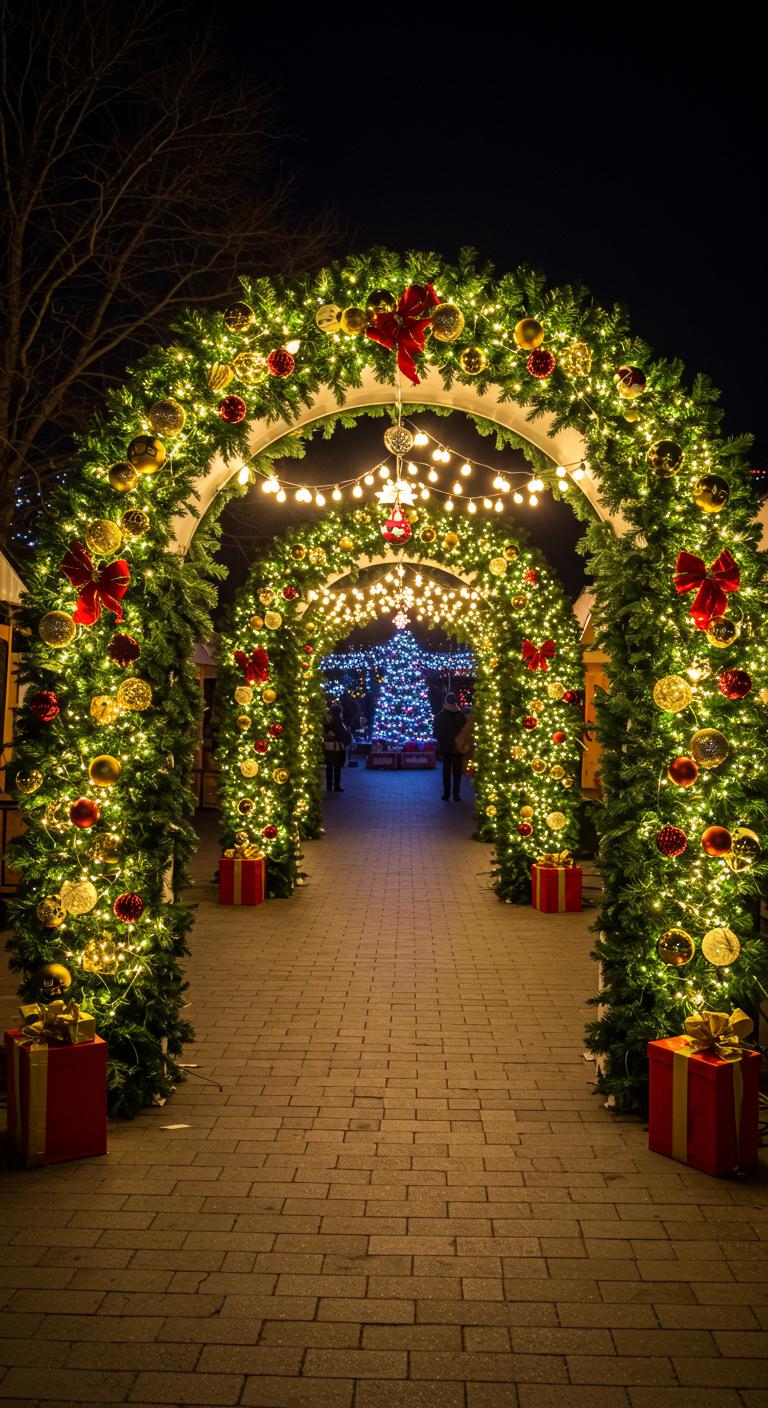 Create a festive doorway arch with greenery and lights. Use branches or garlands to frame your entry. Add ornaments for color and sparkle.