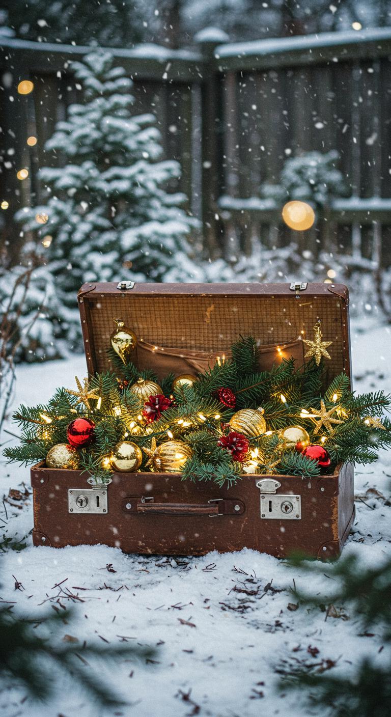 Repurpose an old suitcase for a delightful decoration. Fill it with pine branches and ornaments, or use it as a base for a small tree. It adds a touch of vintage charm to your decor.